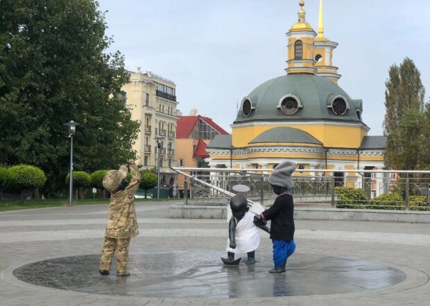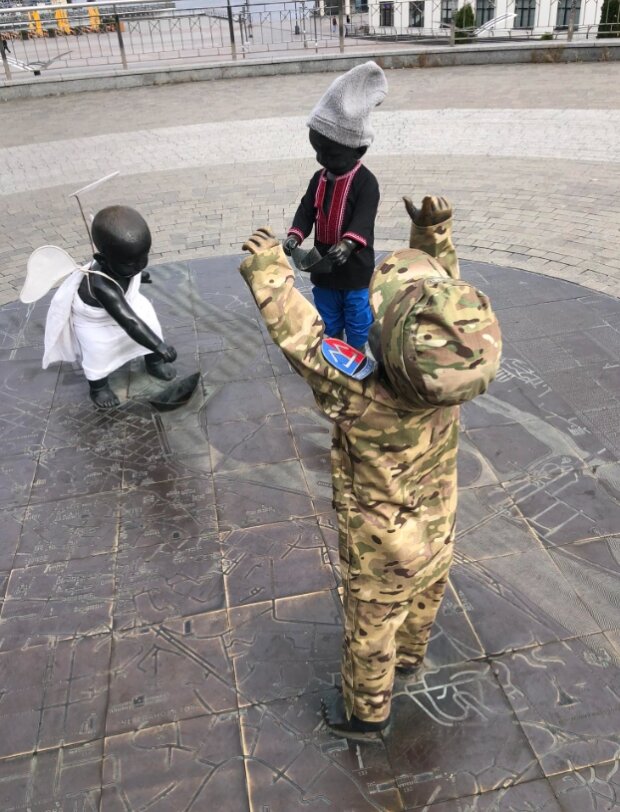 Про це на своїй сторінці в соціальній мережі Facebook повідомив автор пам'ятника Володимир Журавель. Фігури розташовані на Поштовій площі столиці.