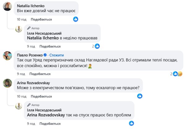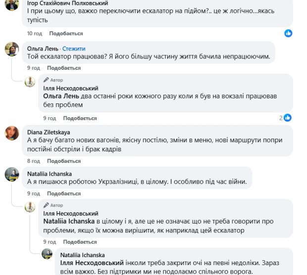 «Щось останнім часом робота «Укрзалізниці» суттєво погіршилася, постійні запізнення, на дві, три години, запізнення на 15 хвилин вже норма і сьогодні побачив головний маркер роботи «Укрзалізниці» – непрацюючий ескалатор на Київському центральному вокзалі»