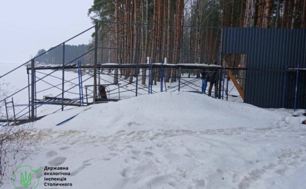 Незаконне будівництво: У межах 100 метрів від урізу води зводять невідомі об’єкти, а також монтують бетонну підпірну стінку довжиною 200 метрів та спуск для човнів (елінг). Знищення природи: Зафіксовано незаконну вирубку сосен на ділянці. Забудовники відмовилися надати дозвільні документи, тож інспекція готує вимоги до землекористувача та звернення до правоохоронців.